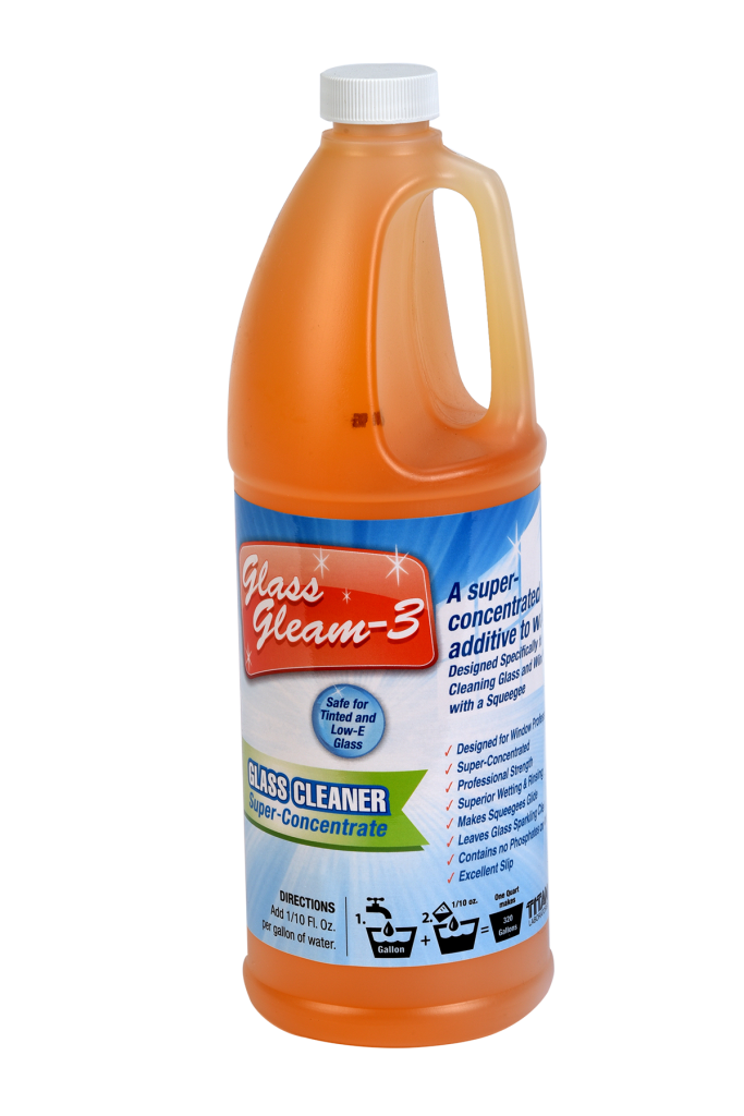 Glass Gleam-3 is a professional-grade glass cleaning concentrate engineered for window cleaners who want crystal-clear results without residue or streaking. Designed specifically for squeegee work, this super-concentrated formula mixes at just 1/10th of an ounce per gallon, giving you excellent performance while keeping your solution costs low.